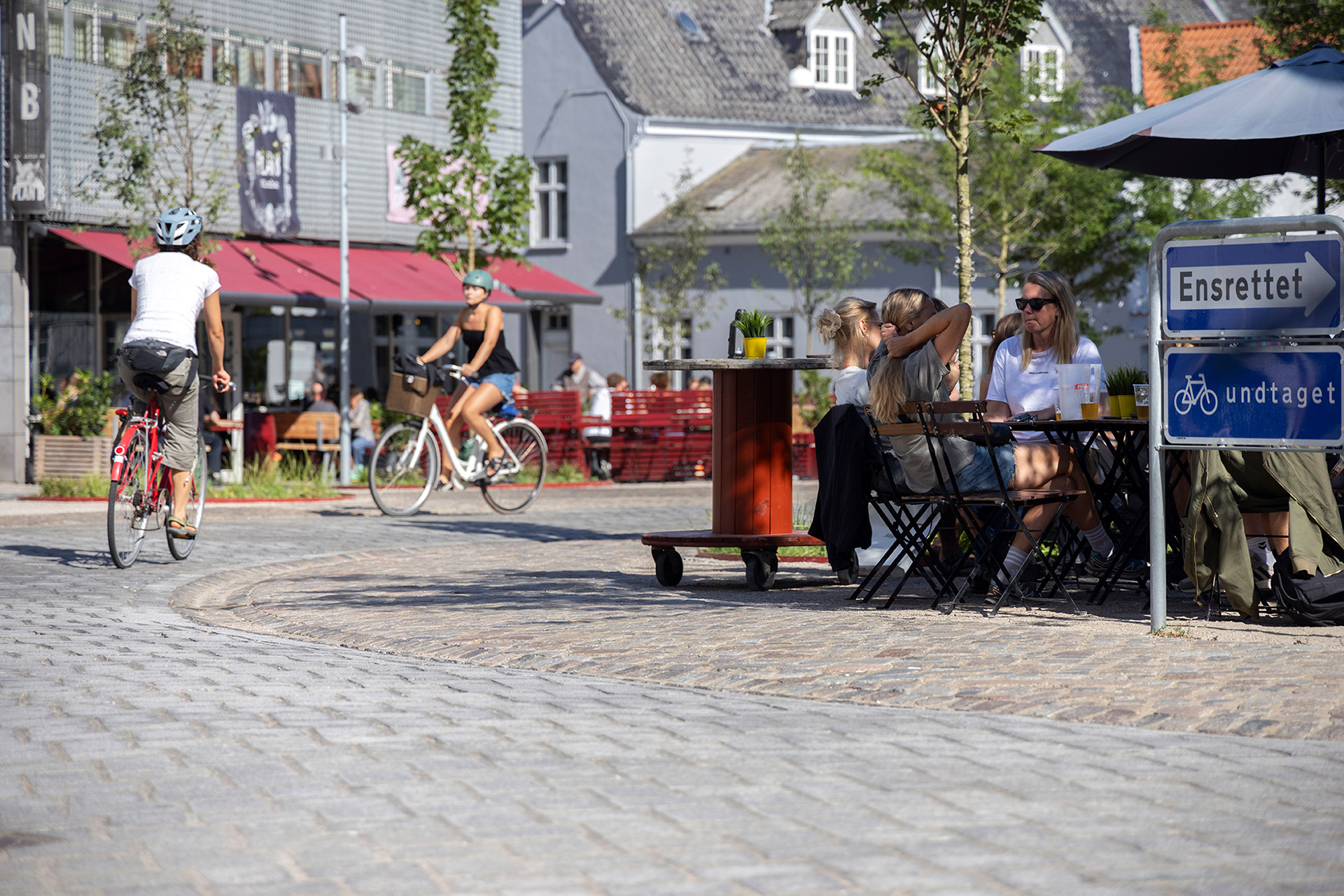 Dermed er rammerne sat for at de erhvervsdrivende kan tiltrække gæster og handlende. Det er helt konkret gjort ved, at parkeringspladser er blevet omdannet til cykelparkering, der er plantet træer og opsat bænke og lavet store plantebede, hvilket bidrager til et mere grønt byrum. Vejen gennem Fredens Torv er blevet s-formet og belagt med genbrugte brosten. De genbrugte brosten er bundet sammen af Lithomex’ styrkefuge L50, som udmærker sig ved at kunne modstå tung trafikbelastning, fra f.eks. renovationsbiler. Lithomex L50 er desuden frost og UV-bestandig, den modstår feje- og sugemaskiner og den minimerer omkostninger til drift og vedligehold af det nye Fredens Torv.